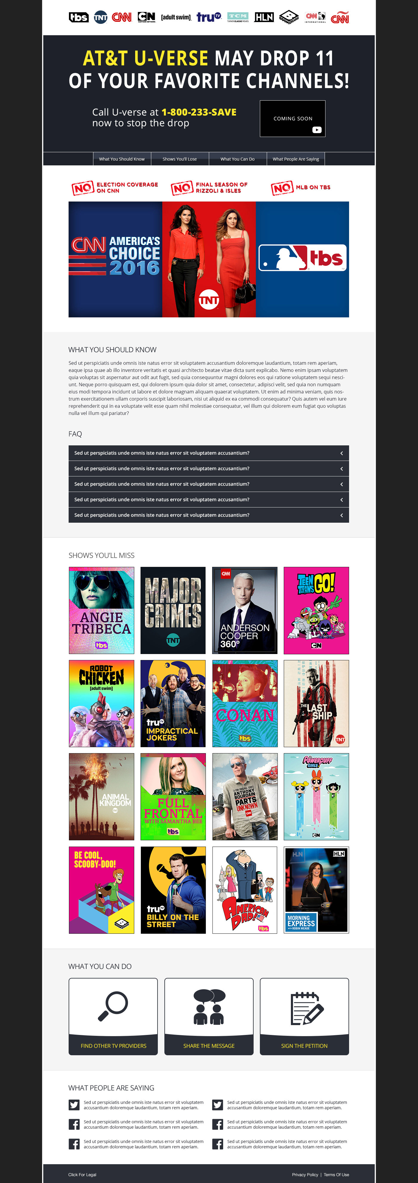 Turner Networks needed a website to inform existing customers of potential changes to their cable package and give them ways to contact their provider.